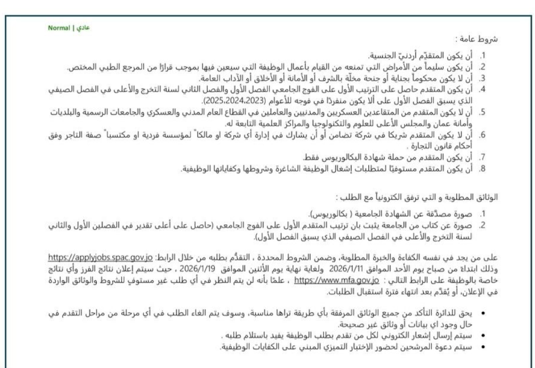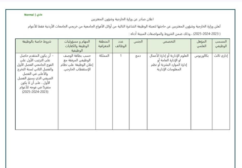 إعلان توظيف رسمي – وزارة الخارجية الأردنية 2026