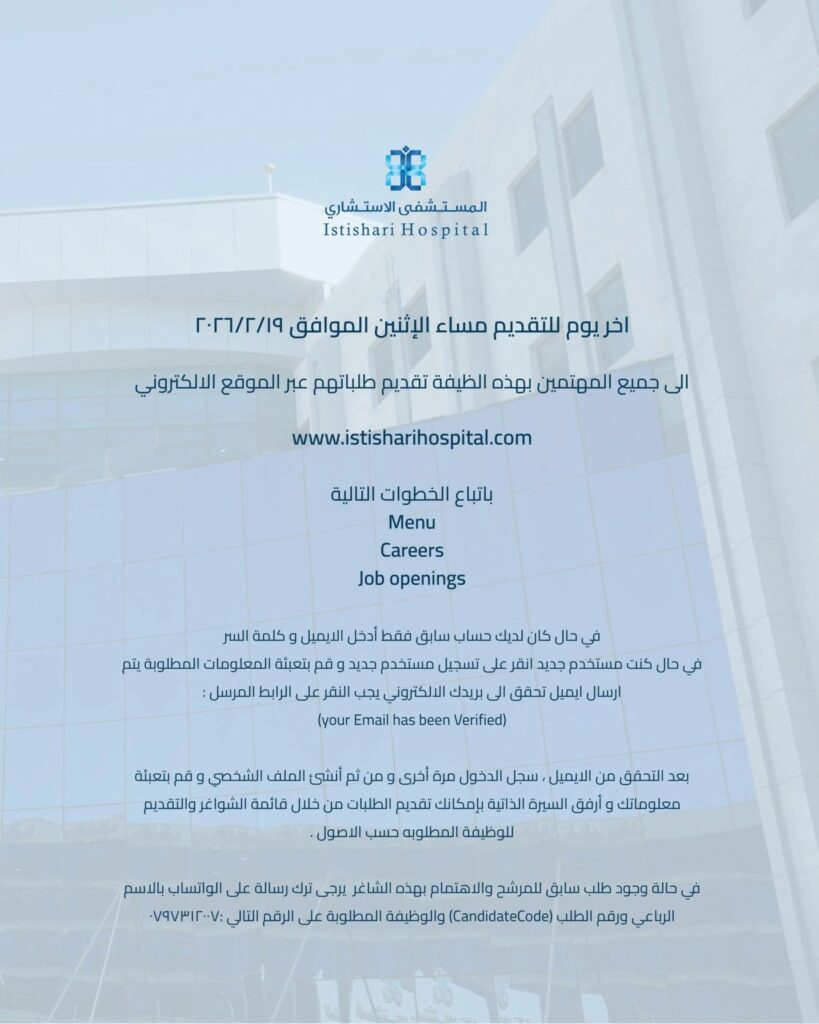 إعلان توظيف رسمي – المستشفى الاستشاري