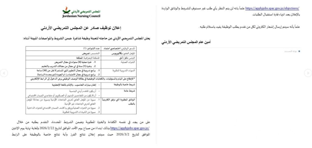 للتقديم على وظائف المجلس التمريضي الأردني 2026 يرجى الدخول إلى الرابط الرسمي التالي: