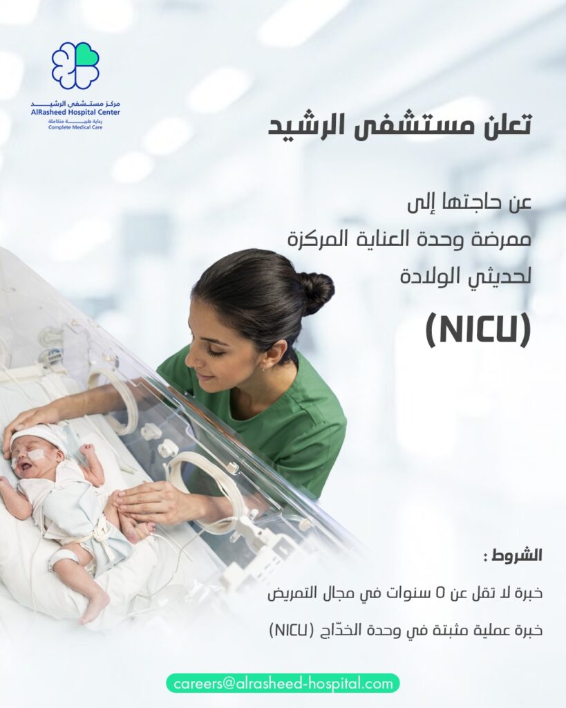 تندرج وظائف مستشفى الرشيد 2026 ضمن أبرز الوظائف الطبية في الأردن، خاصة في تخصص تمريض الخدّاج (NICU) الذي يُعد من أكثر التخصصات طلبًا.