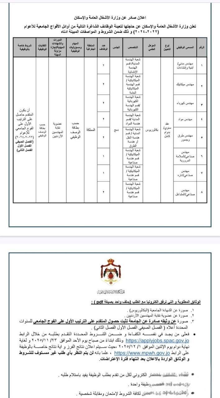 عاجل: وزارة الأشغال العامة والإسكان تعلن عن فرص عمل متاحة